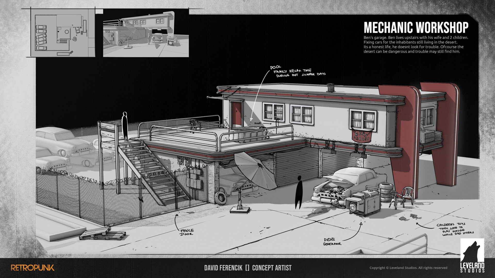 Retropunk is an open-world 1st person action RPG set in alternative American south-west following a global Corpocracy reform where large corporations took over state governments and its citizens. The narrative and setting is heavily built upon dystopian Retrofuturistic motives like Blade Runner or Terminator giving a Tech noir vibe.